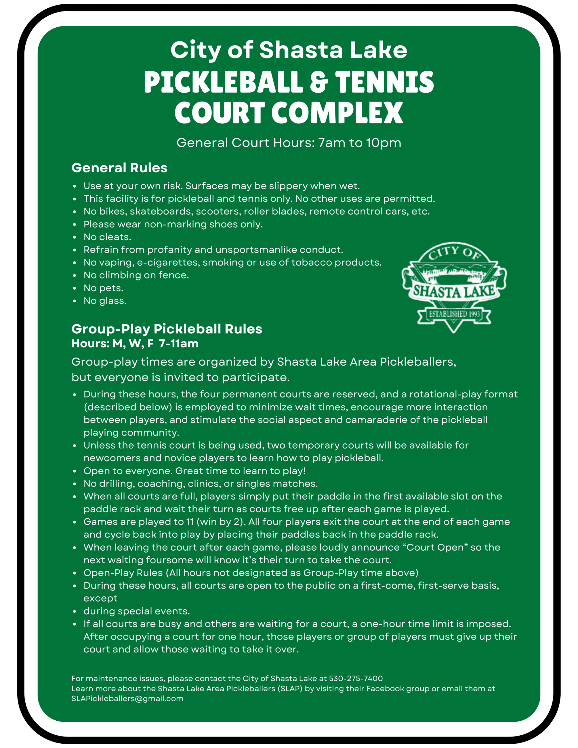 Shasta Lake Area Pickleballers (SLAP)